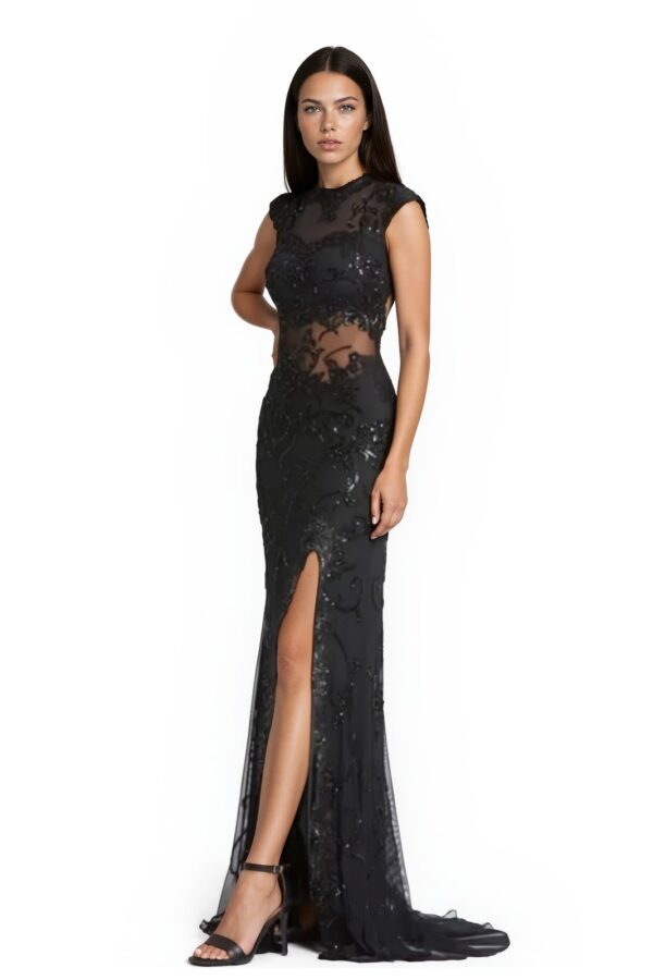 Mac Duggal Evening Gown Women's Size 6 Black Beaded Sequin Lace Mesh