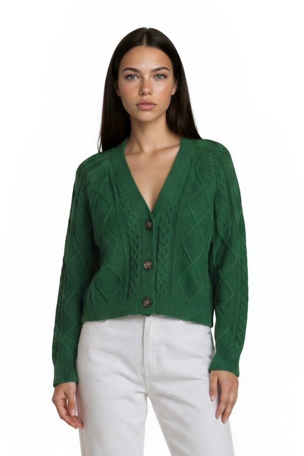 Madewell Cardigan Sweater Women's Size Small Green Wool Blend V Neck Button Crop