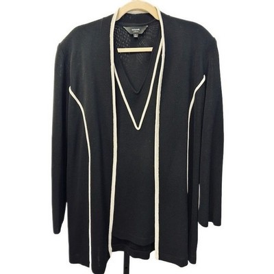 Ming Wang Knit Jacket Women's Size XL Black Striped Trim Open Front
