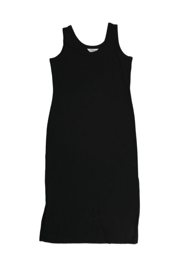 Misook Knit Midi Dress Women's Size Large Black Sleeveless Scoop Neck Sheath