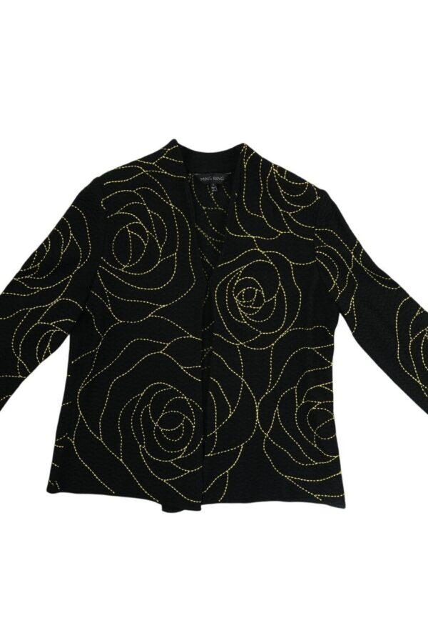 Ming Wang Cardigan Jacket Women's Size Small Black Yellow Floral Knit