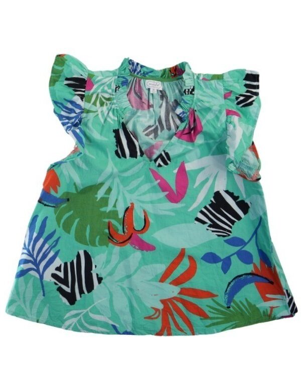 Mud Pie Top Women's Size Medium Green Tropical Palm Leaf Ruffle Sleeve