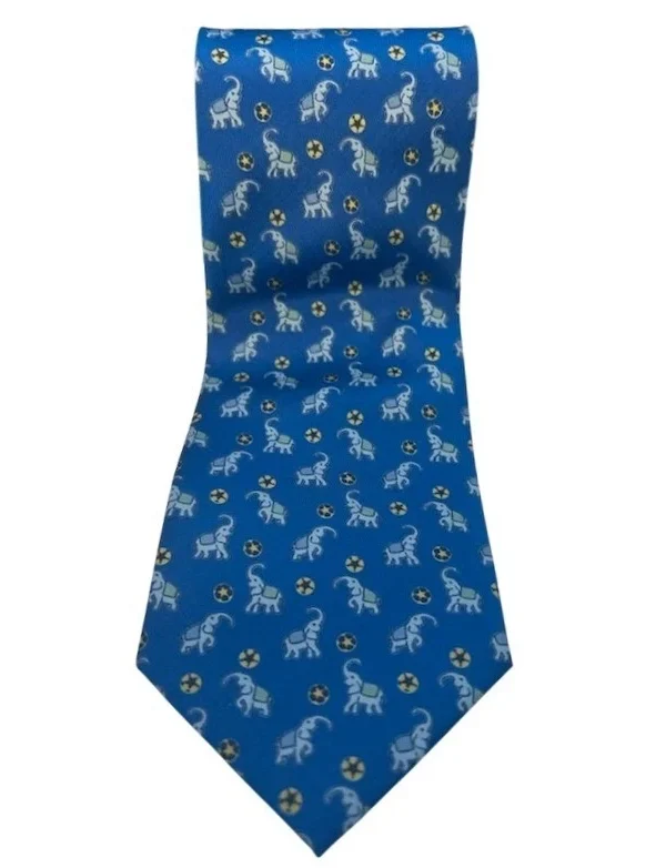 Thai 100% Silk Necktie Blue Elephant Print Men's Fashion Neck Tie