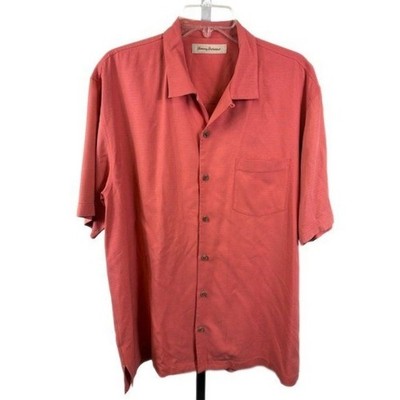 Tommy Bahama Men's Size Large Coral 100% Silk Short Sleeve Button Up Shirt