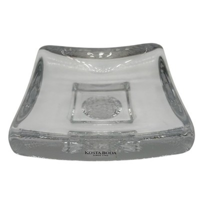 Kosta Boda Glass Square Dish Clear Crystal Golf Ball Center Bowl