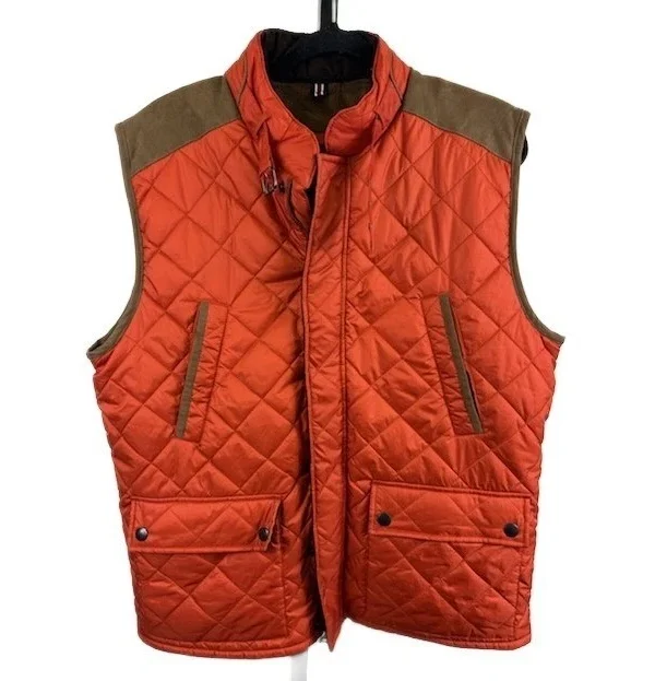 Tommy Hilfiger Puffer Vest Men's Size Large Orange Quilted Leather Suede Accents