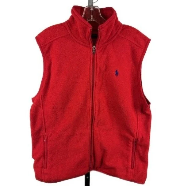 Polo Golf Ralph Lauren Vest Men's Size Medium Red Fleece Full Zip Logo