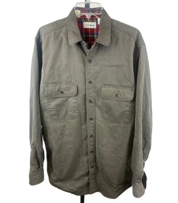 L.L. Bean Men's Medium Tall Green Plaid Flannel-Lined 100% Cotton Shirt Jacket
