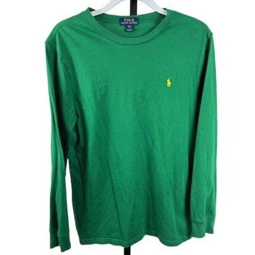Polo Ralph Lauren Boys Size XL Green Long Sleeve Crew Neck Pony Logo T-Shirt Top