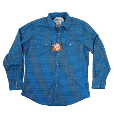 New Wrangler Wrancher Shirt Men's Size Large Blue Plaid Pearl Snap Western