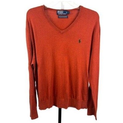 Polo Ralph Lauren V Neck Sweater Mens Size Large Orange Cotton Cashmere Blend