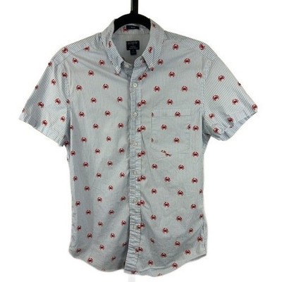 J Crew Top Men's Size Small Slim Fit Short Sleeve Button Down Crab Blue White
