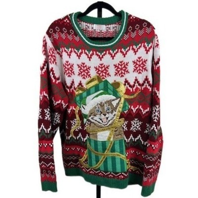 Holiday Time Men's Size XL Ugly Christmas Cat Sweater Gift Print