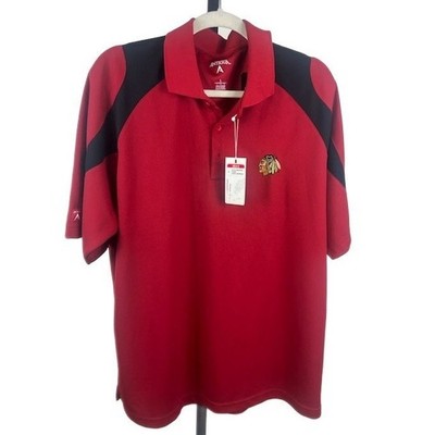 Antigua Chicago Blackhawks NHL Polo Shirt Mens Large Red Black Short Sleeve