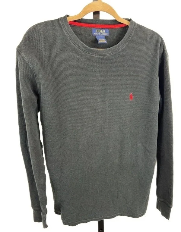 Polo Ralph Lauren Top Men's Size Medium Thermal Long Sleeve Shirt Gray Crew Neck