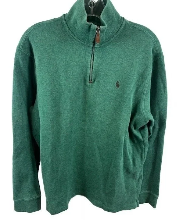 Polo Ralph Lauren Men's Size Medium Green Quarter Zip Pullover Sweatshirt
