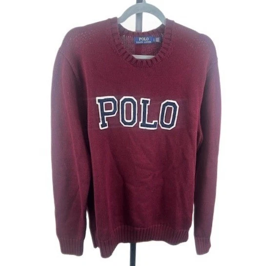Polo Ralph Lauren Logo Sweater Men's Size Large Burgundy Crew Neck Cotton