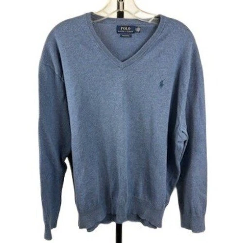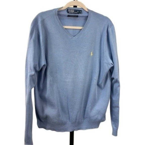 Polo Ralph Lauren Sweater Men's Size XL Blue 100% Pima Cotton V-Neck