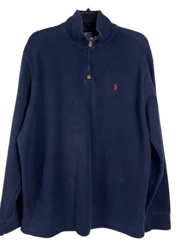 Polo Ralph Lauren Mens Size XL Navy Blue Quarter Zip Top Sweater Red Pony Fleece