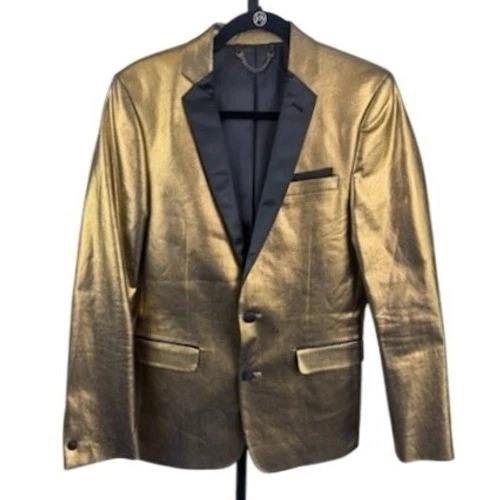 ASOS Metallic Gold Black Tuxedo Blazer Jacket Men's Size Small Slim Fit