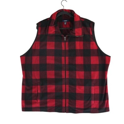 Chaps Fleece Vest Men's Size 3X Red Black Buffalo Plaid Full Zip