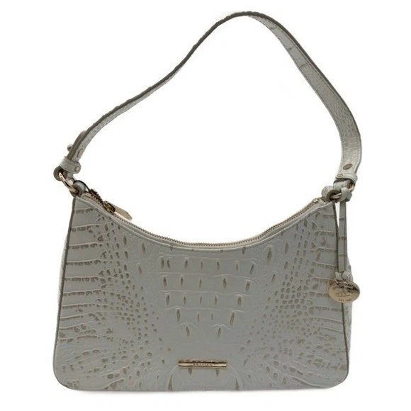 New Brahmin Esme Melbourne Croc Embossed White Gray Leather Shoulder Bag