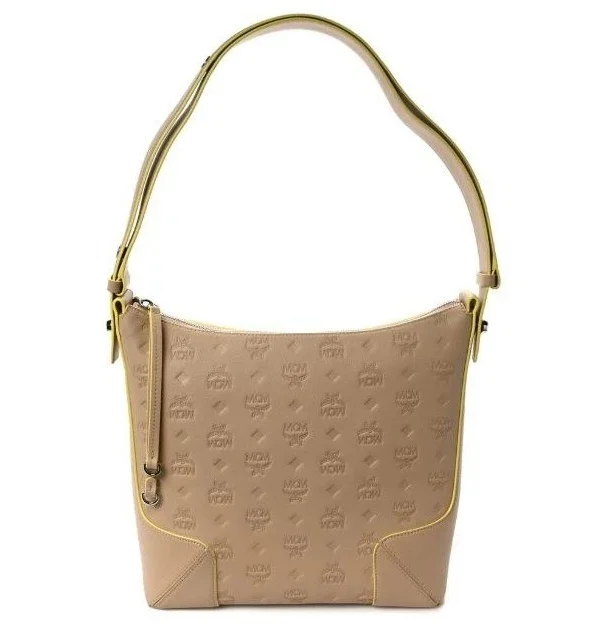 Authentic MCM Klara Monogram Embossed Leather Hobo Shoulder Bag Beige Yellow