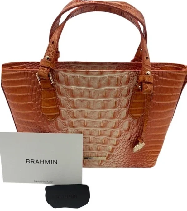 Brahmin Tan Melbourne Croc Embossed Leather Tote Purse Bag Detachable Strap