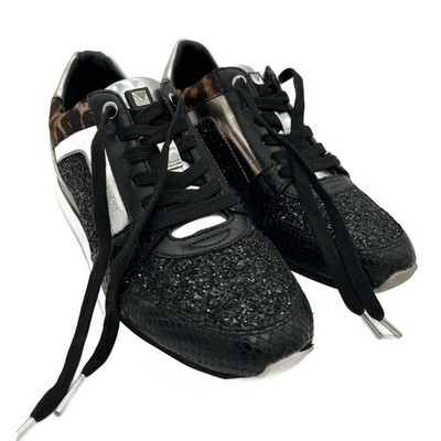 Michael Kors Women's Size 8.5 Black Glitter Leopard Wedge Sneakers Tennis Shoes
