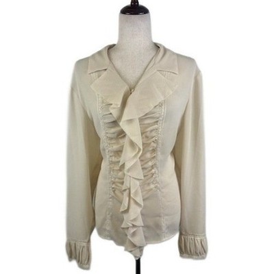 Vintage Liz Claiborne Cream Ruffle Romantic Blouse Top Career Women's Size 16