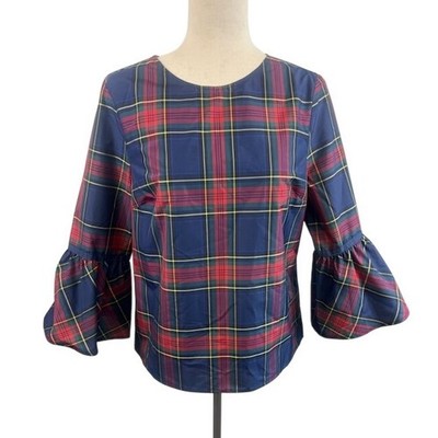 Vineyard Vines Plaid Taffeta Flared Bell Sleeve Top Red Blue Women's Size 6