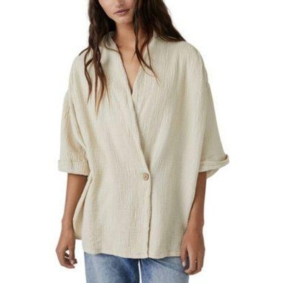 We The Free People White Cotton Button Kimono Top Blouse Size Small
