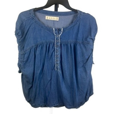 We The Free People Denim Top Women's Blue Button Up Sleeveless Size Small