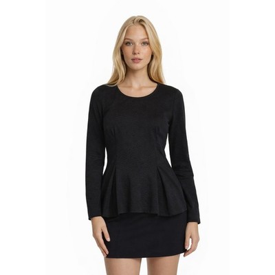 Armani Exchange Top Womens Size Small Black Textured Peplum Long Sleeve Gold Zip