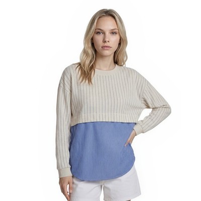Anthropologie Mixed Media Top Women's Size Small Blue White Pinstripe Tie Back