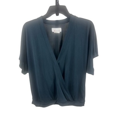Anthropologie Blouse Teal Blue Short Sleeve V Neck Top Size Small
