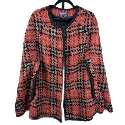 Vivienne Tam Women's Size 12 Red Houndstooth Tweed Collarless Cape Jacket