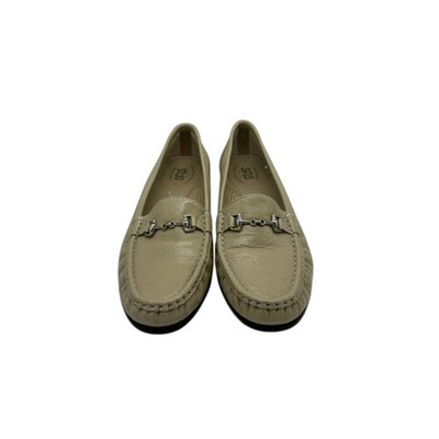 SAS Loafers Leather Comfort Dress Shoes Beige Horsebit Silver Accents Size 9.5N