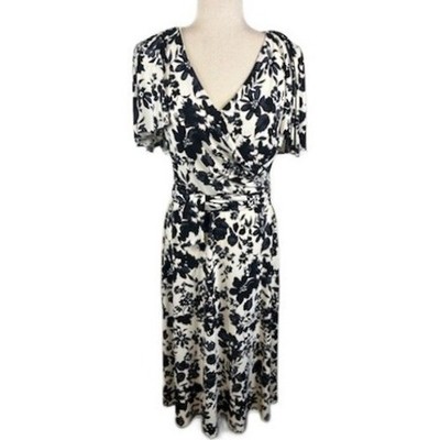 Lauren Ralph Lauren Women's Floral Print Midi Dress Black White Size 8