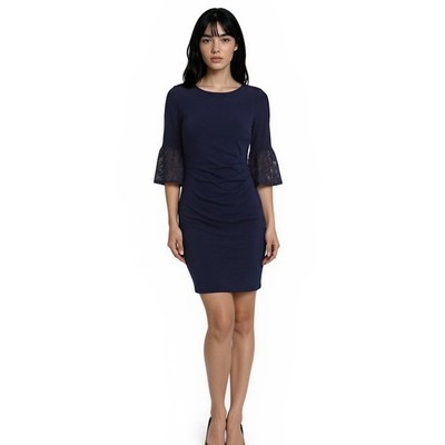 Lauren Ralph Lauren Dress Women's Size 10 Navy Blue Lace Bell Sleeve Sheath