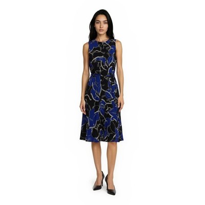 Lauren Ralph Lauren Dress Women's Size 10 Blue Black Chain Equestrian Faux Wrap
