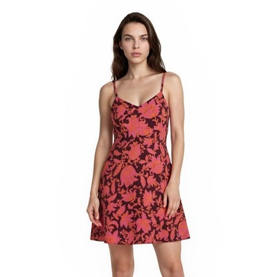LOFT Dress Women's Size 10 Burgundy Pink Orange Floral Fit Flare Dress NEW