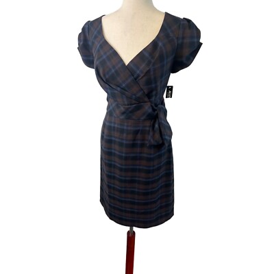 New Allen B Plaid Dress Puff Sleeve Career Party Brown Blue Size 10