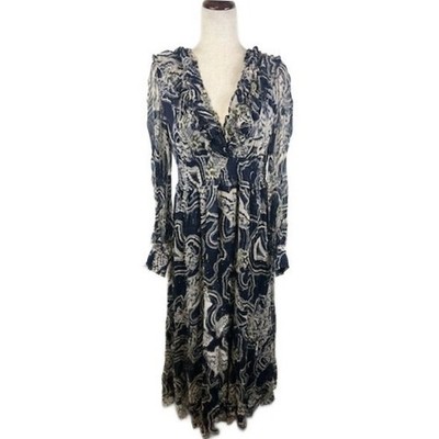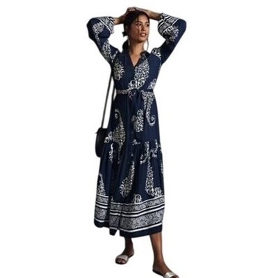 Anthropologie Tiered Button Down Maxi Dress Paisley Long Sleeve Boho Size XS