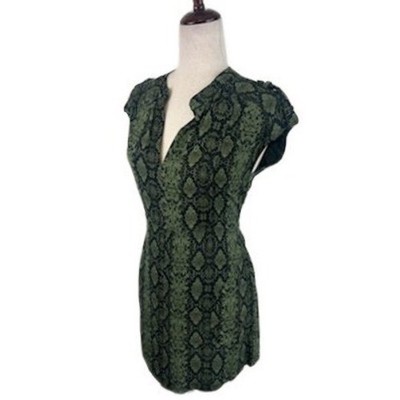 Anthropologie Mini Dress Snakeskin Green Black V Neck Short Sleeve Size XS