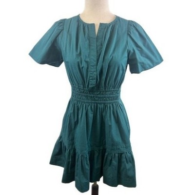 Anthropologie Dress Women's Size Small Teal Green Smocked Waist Tiered Ruffle