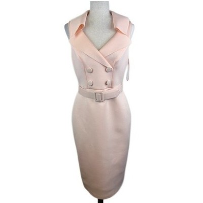 Badgley Mischka Scuba Pale Pink Double Breasted Bodycon Belted Dress Size 10
