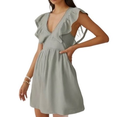 Anthropologie Women's Size Small Sage Green Lace Trim Flutter Sleeve Mini Dress