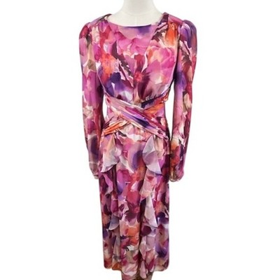 Aqua Formal Floral Maxi Dress Long Sleeve Ruffle Pink Purple Women's Size 6