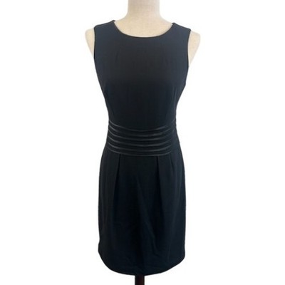 Banana Republic Black Dress Faux Leather Trim Sheath Office Cocktail Size 8 $159